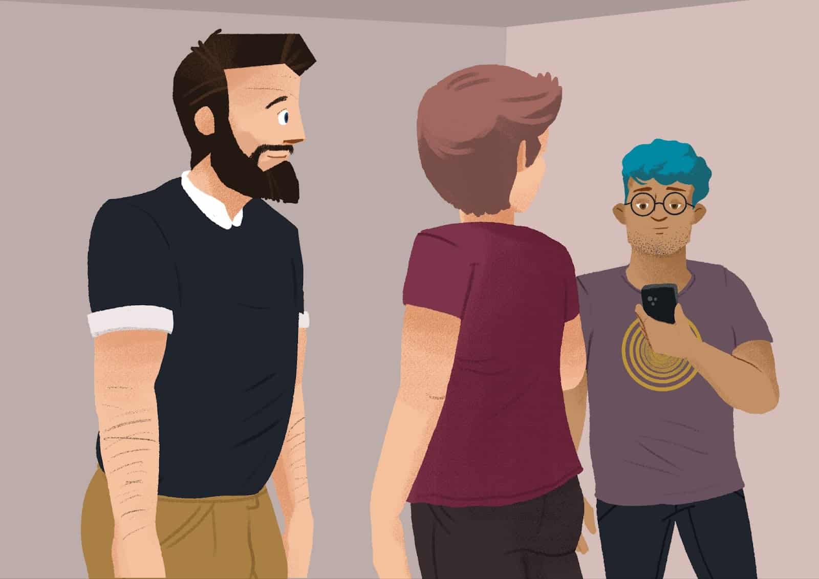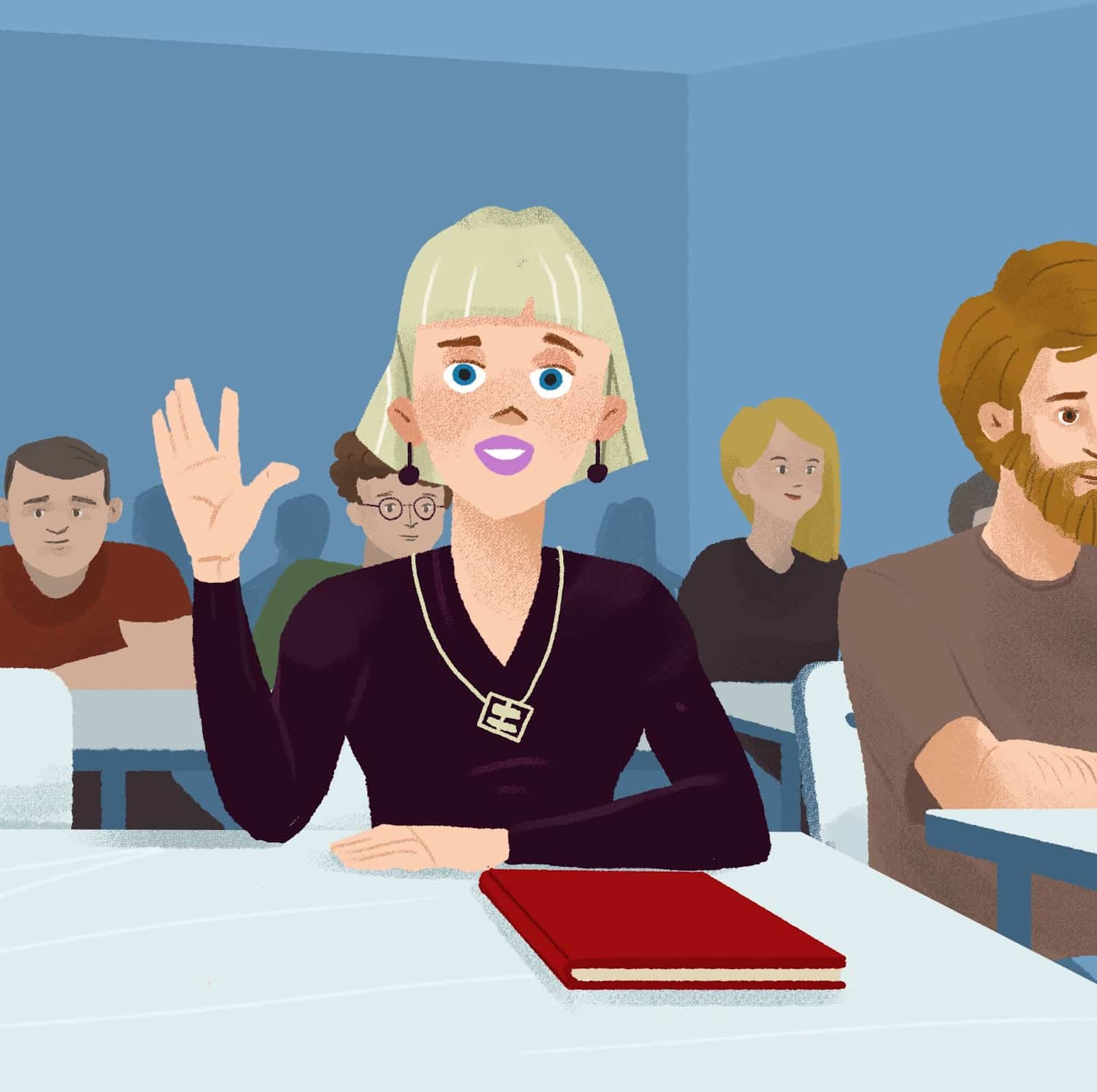 While Luka was talking with James, Laura (a new student from the USA) was talking with two other students at her University in Zagreb.