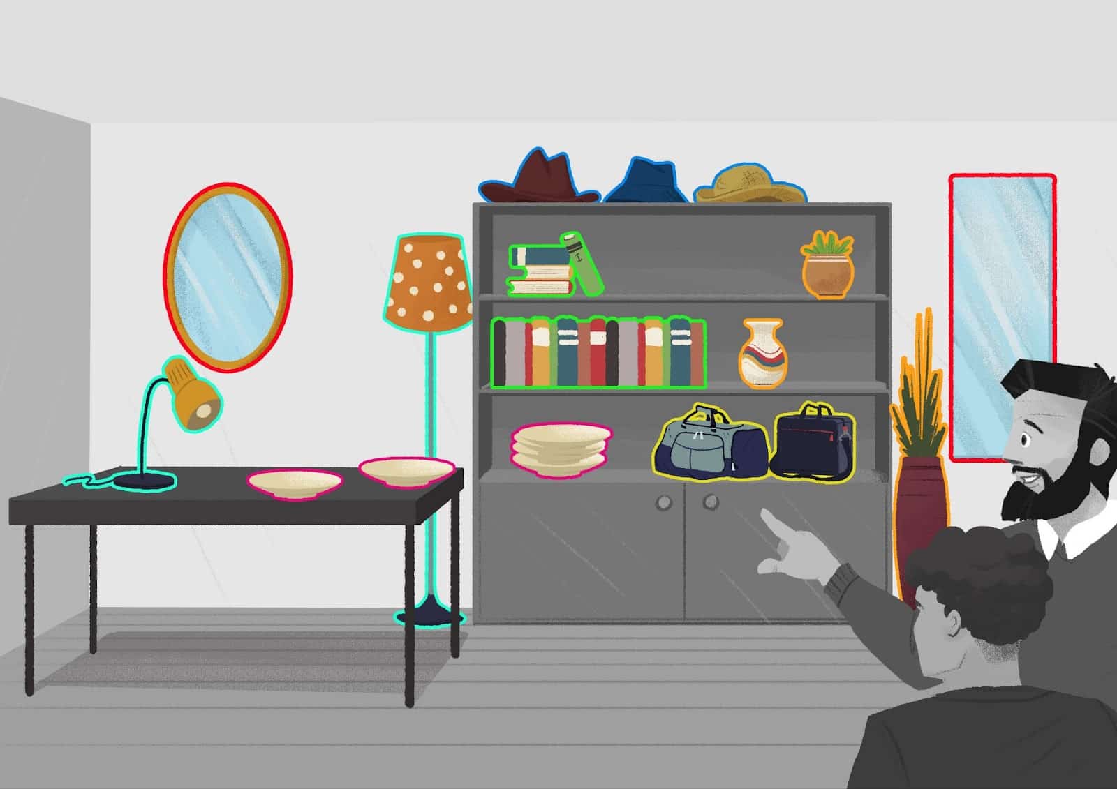 Remember when James was initially learning some basic vocabulary? Now, he's trying to learn how to express the position of things - where things are located around him.