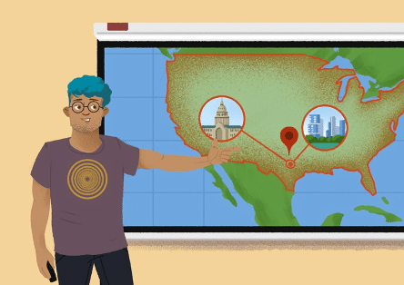 Laura je: iz San Diega iz Los Angelesa iz San Francisca | James je: iz Houstona iz Austina iz Dallasa |