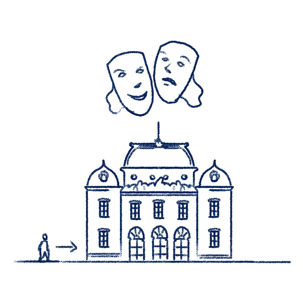 Idem u kazalište na predstavu. | Idem u crkvu na misu. | Idem na posao. |