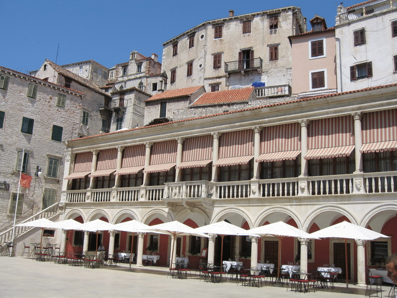 | Gradska vijećnica, Šibenik (16. stoljeće) | Crkva sv. Stjepana, Hvar (17. stoljeće) |