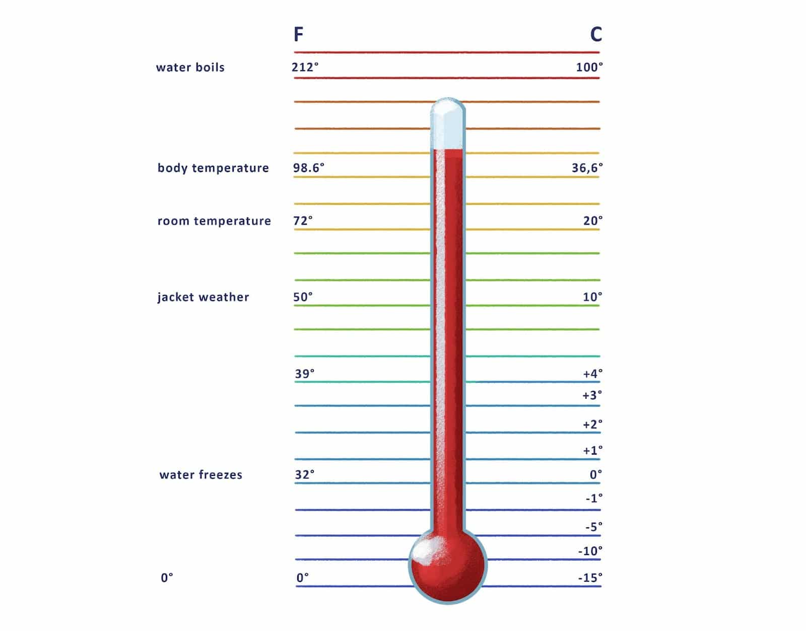 In Croatia the temperature is expressed in Celsius. Look at the chart to get a sense of how Fahrenheit and Celsius temperatures compare.