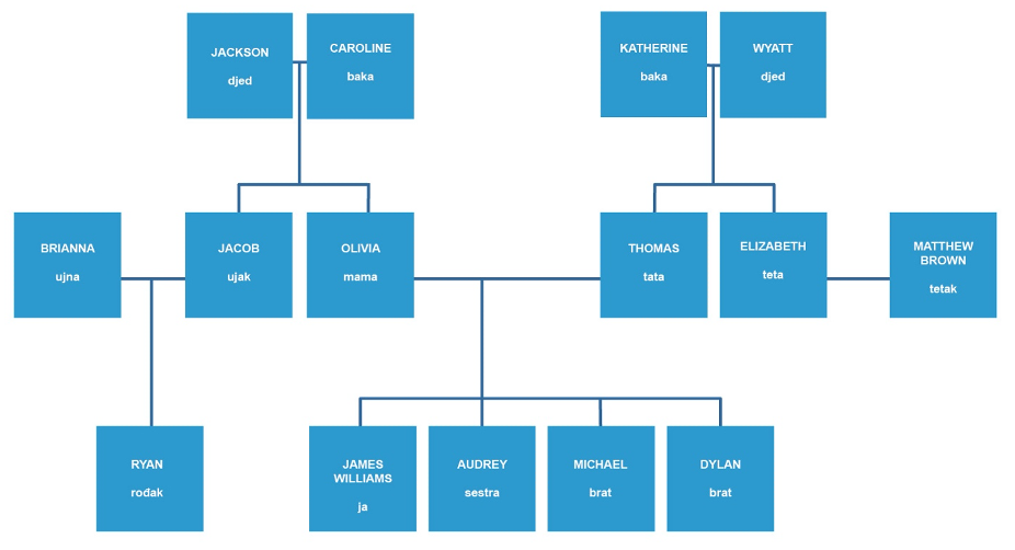 mami, sestri, teti, ujni, baki tati, bratu, ujaku, tetku, djedu |