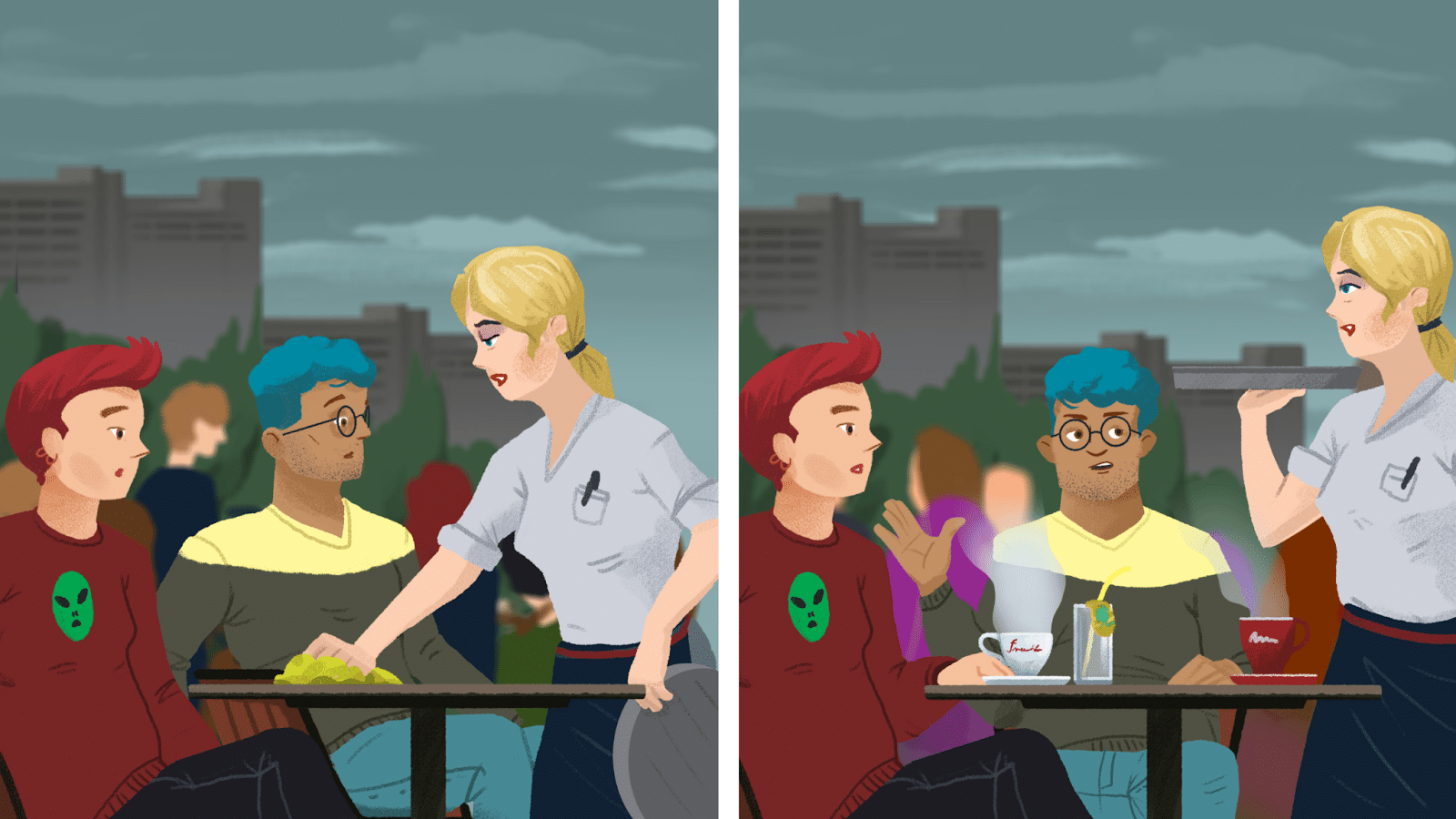 Look at/listen to all the dialogues from today’s lesson again (practice the vocabulary). Use dialogue 2 or dialogue 3 and the situation that appeared in them to create a new dialogue with one of your classmates. One of you is the guest and the other one is the coffee shop employee. Submit your video recording online.