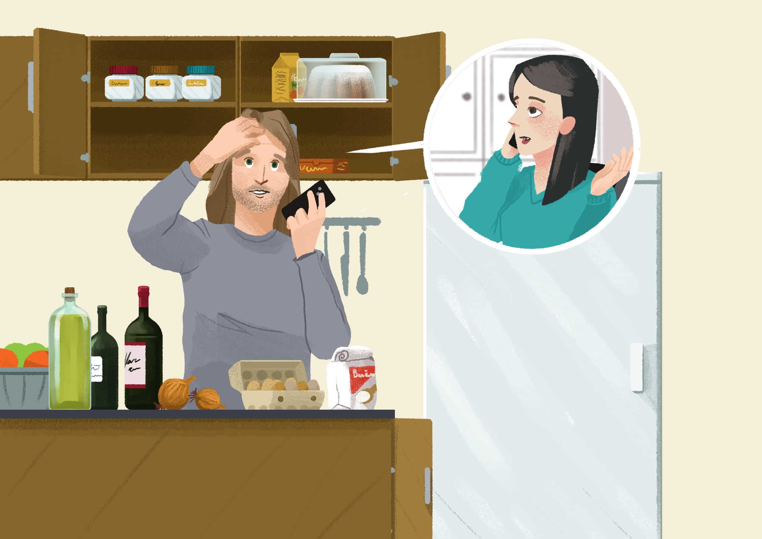 | Mario: | Moram u trgovinu. Radim popisa list namirnica za večeru u subotu. |