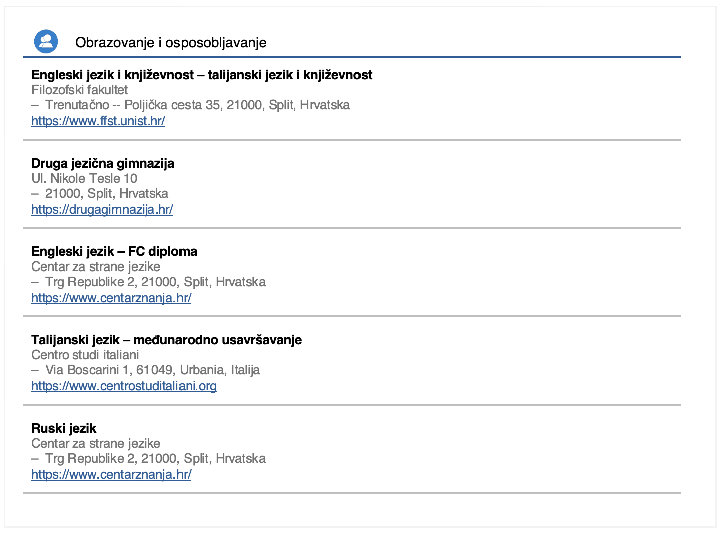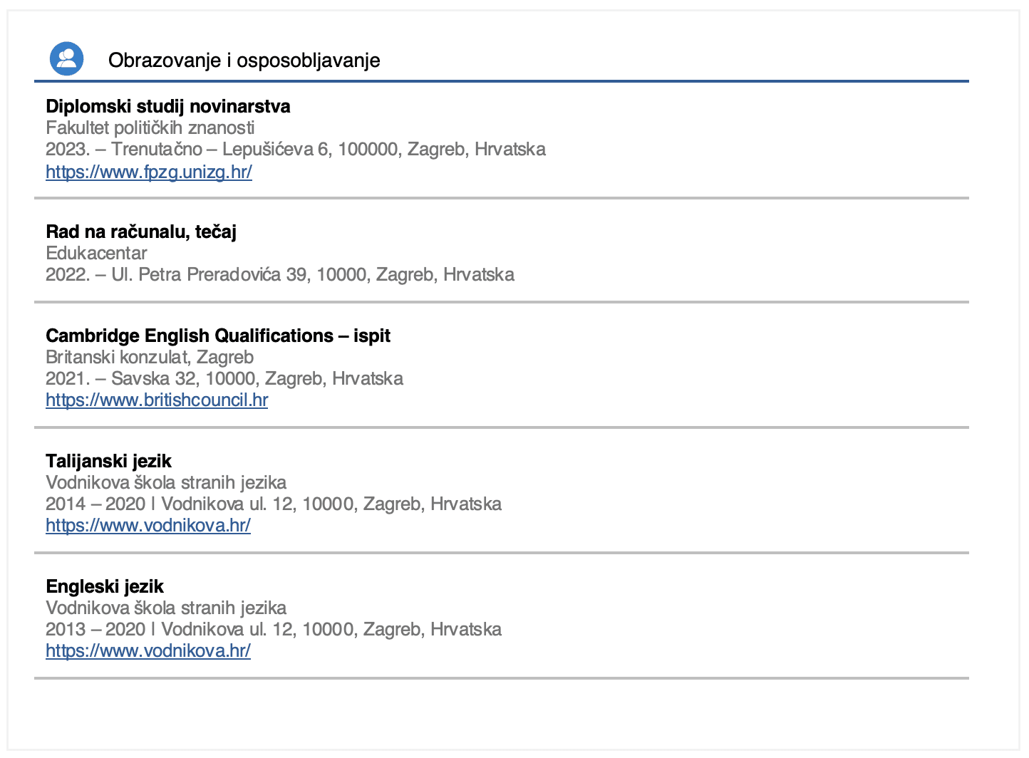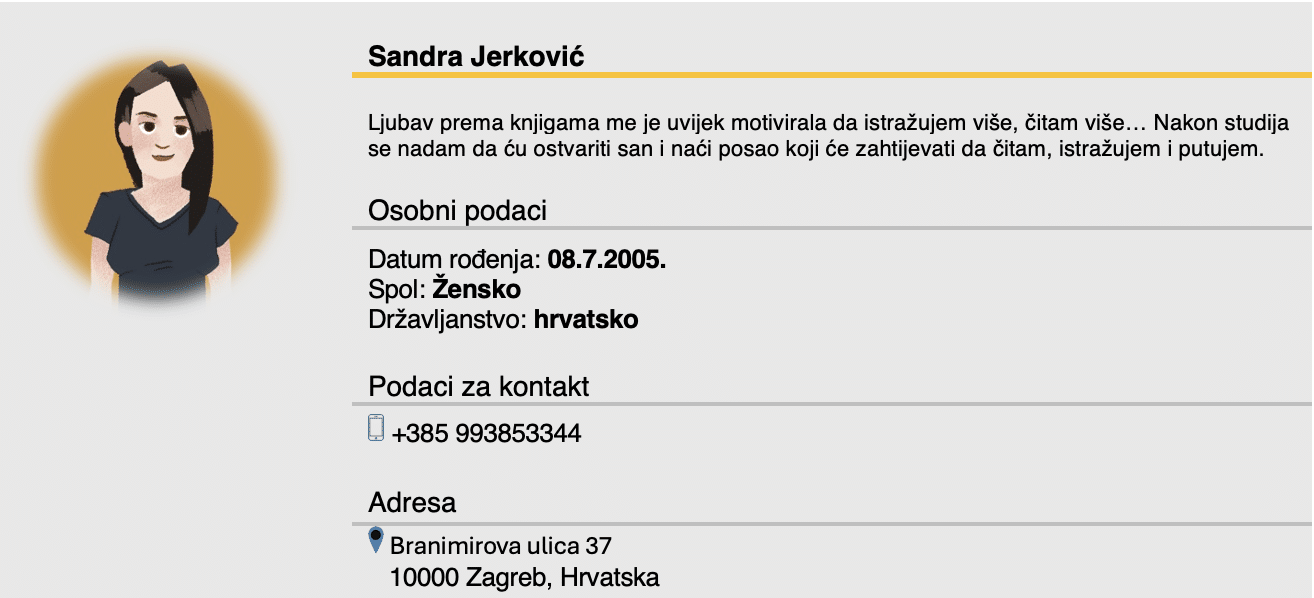 9.2 Zadatak 9. Curriculum Vitae